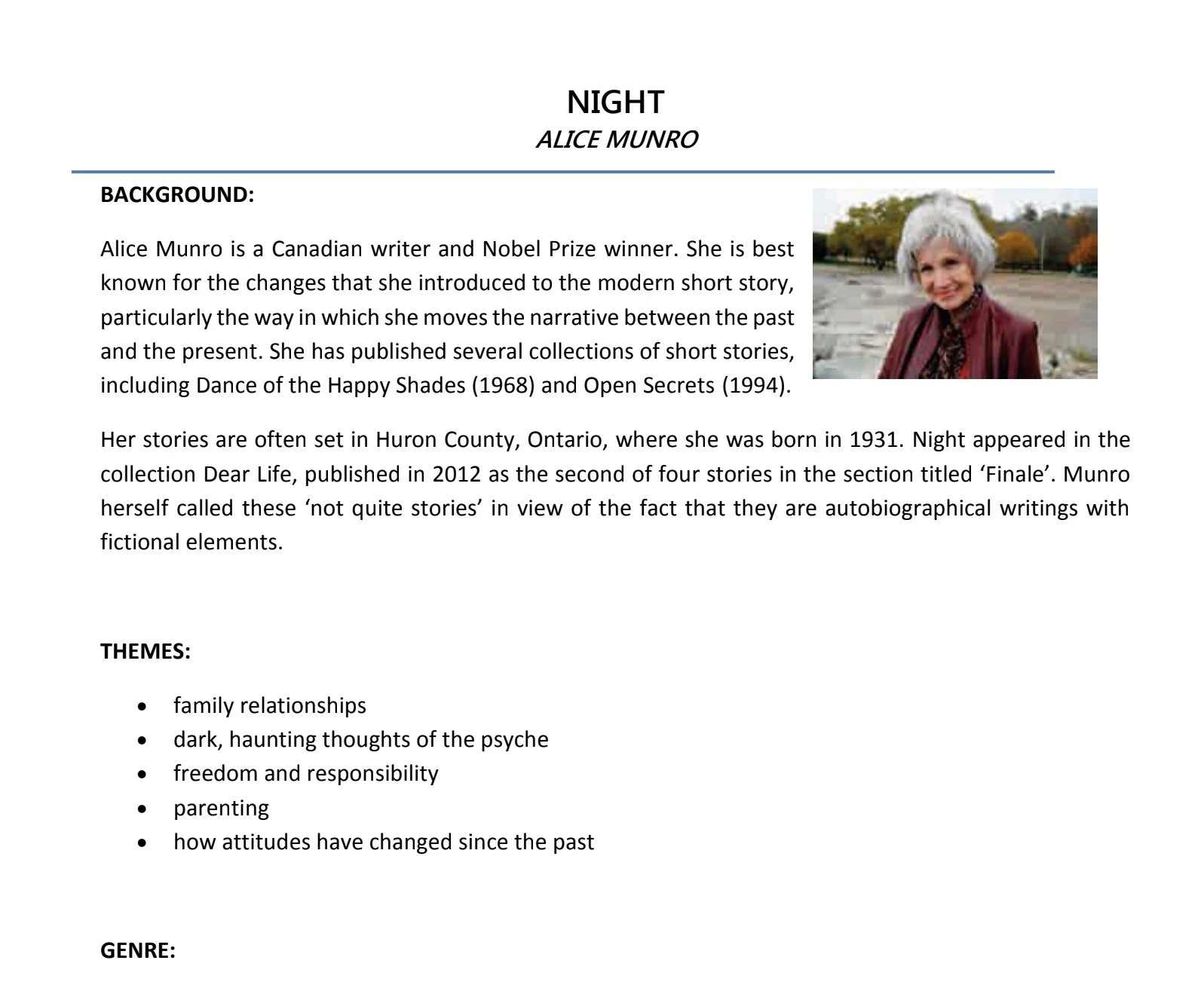 BP2 Fiction : Night by Alice Munro