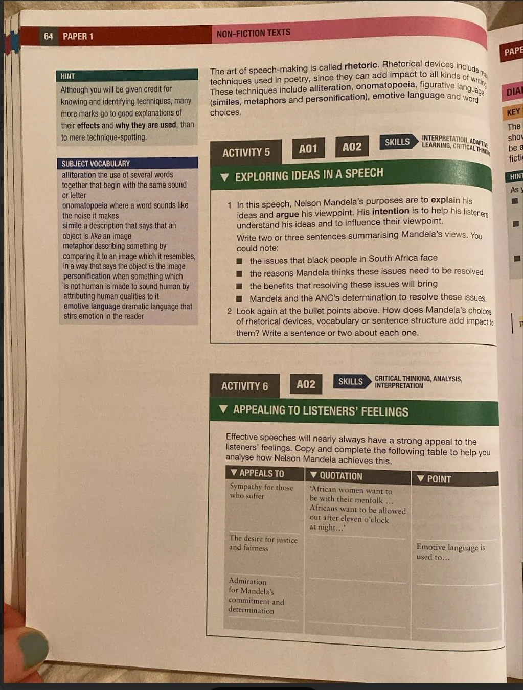 Nelson Mandela speech (Pearson Edexcel Spec B and A)