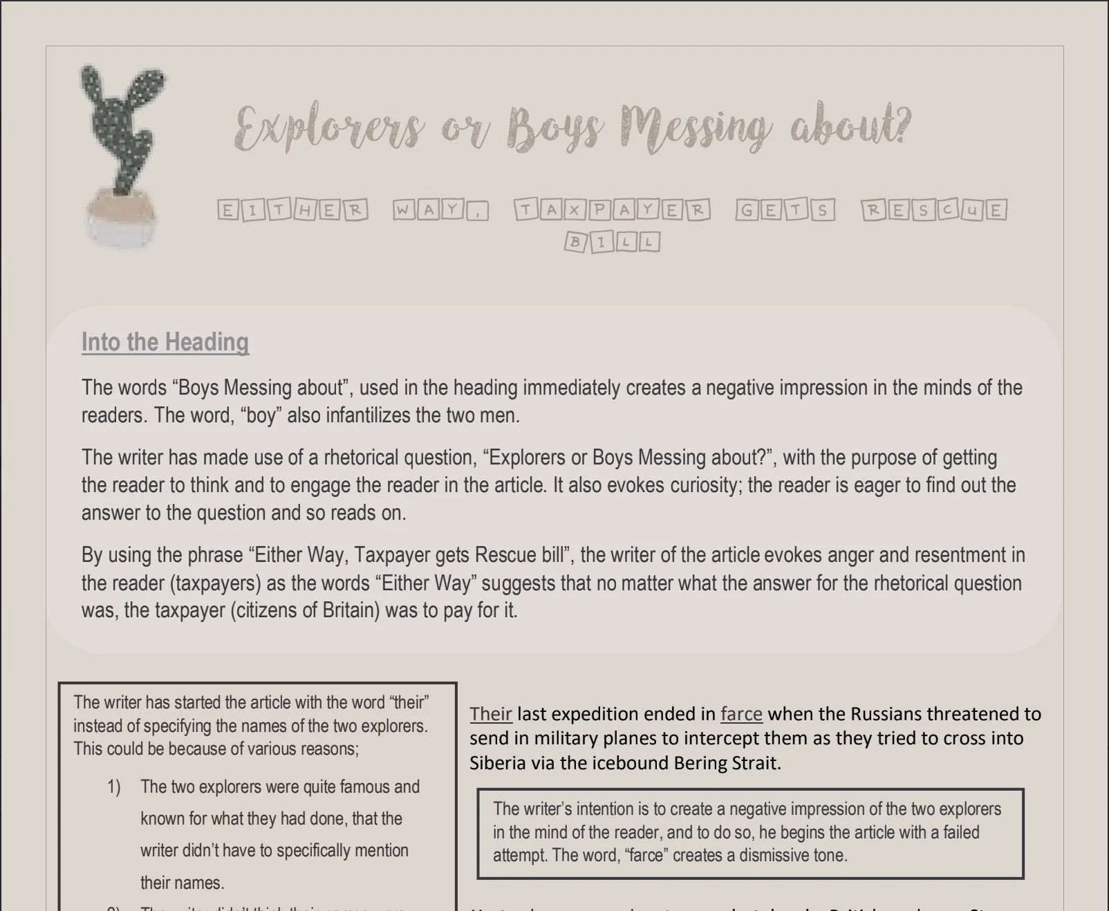 BP2 Non-Fiction: 'Explorer's or Boys Messing About'